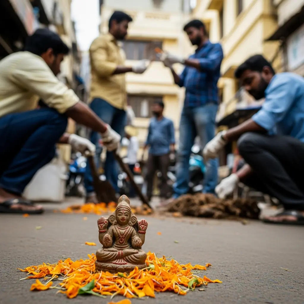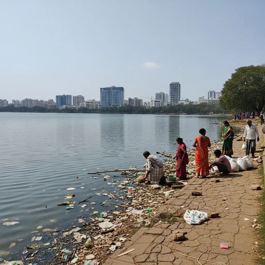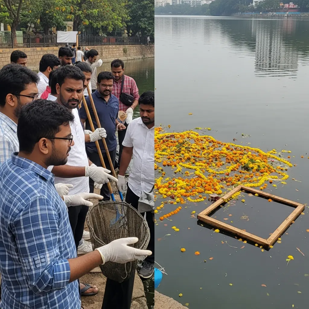 The main immersion tank at Ulsoor is full of rotting flowers, bamboo sticks, and remnants of idols from last week's festival. The water is stagnant and starting to smell really bad, affecting the nearby residents. We need to manually pull out the larger wooden frames and the non-biodegradable decorations that didn't get cleared by the machines. It’s a messy job, but we need to do it before it completely rots and pollutes the main lake. If anyone wants to join in or has done something similar, would be great to coordinate. It might be possible to organize something small to address this collectively.